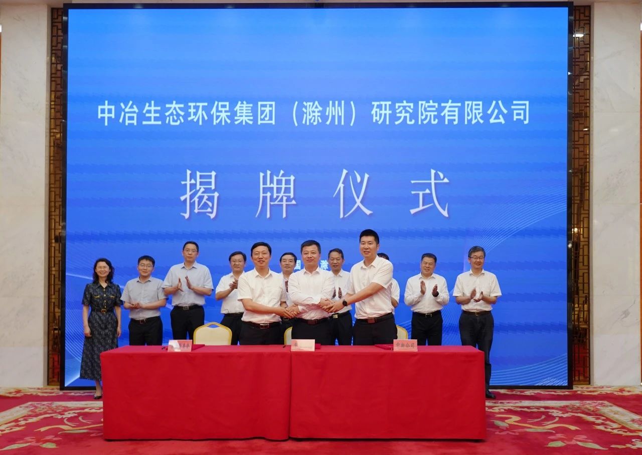 7月4日上午,中冶生態環保集團(滁州)研究院有限公司(以下簡稱“滁州研究院”)簽約暨揭牌儀式在安徽省滁州市舉行。中冶集團暨中國中冶總經理(總裁)助理,公司董事長、黨委書記范萬柱,副董事長、總經理、黨委副書記伍紹輝,中冶華天黨委書記、董事長方榮華;滁州市委書記許繼偉,市委副書記、市長吳勁,市領導鄧繼敢、貢植平,中新蘇滁高新區黨工委書記楊廣蘭,市政府秘書長王玉和等出席,并共同見證投資簽約。